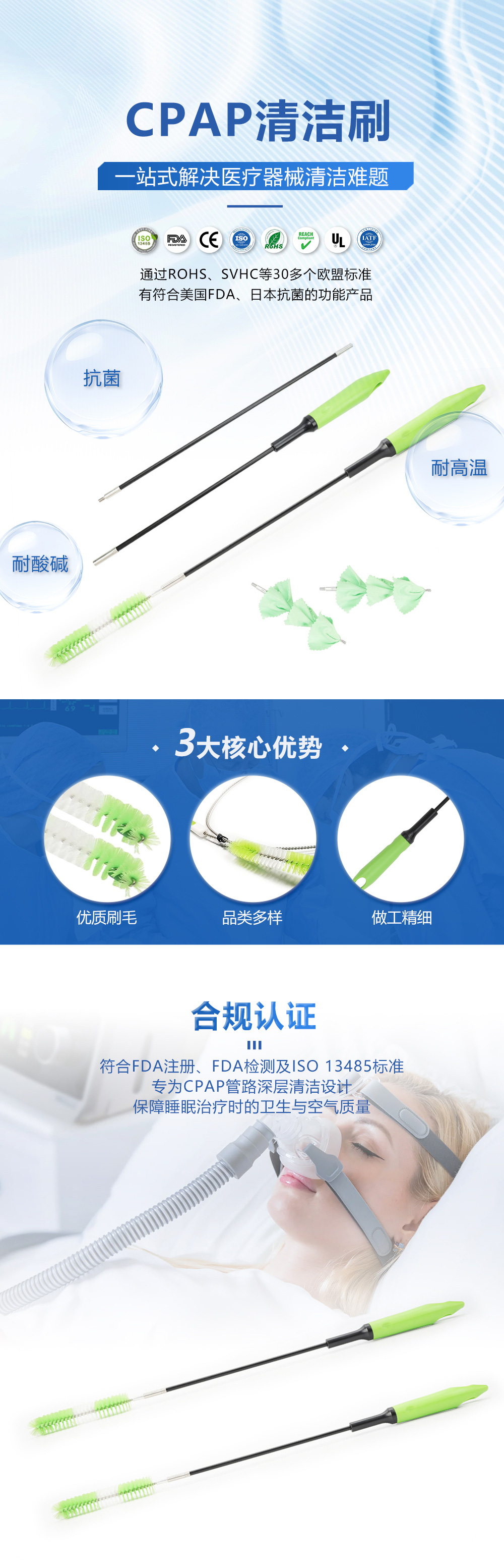 - 功能/用途:專為CPAP管路深層清潔設(shè)計,適配標(biāo)準(zhǔn)及細(xì)型CPAP管路
