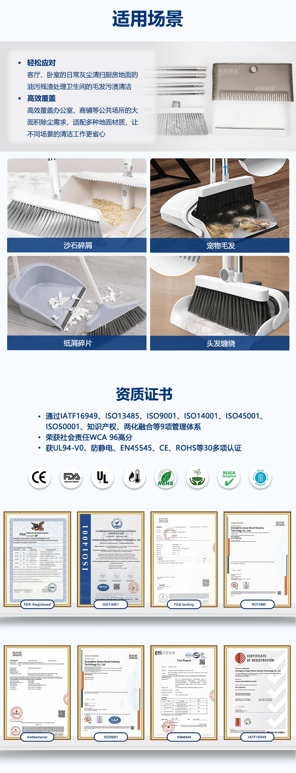 - 應(yīng)用范圍:客廳、臥室的日?;覊m清掃廚房地面的油污殘?jiān)幚硇l(wèi)生間的毛發(fā)污漬清潔,高效覆蓋辦公室、商鋪等公共場所的
